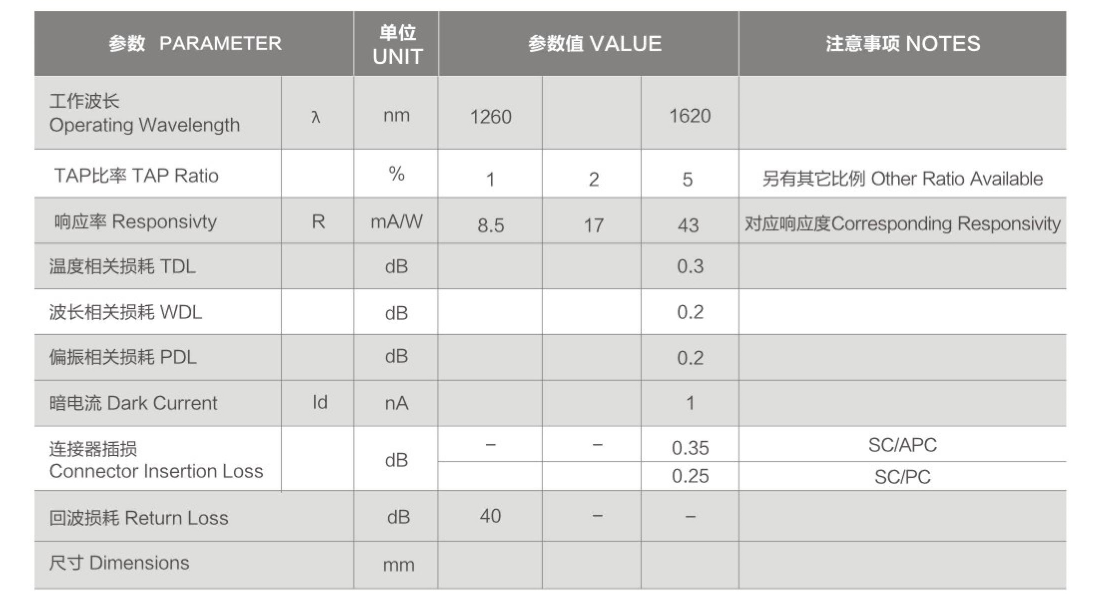 雙芯尾纖式結(jié)構(gòu),實(shí)現(xiàn)一定比例的光透射到探測器,其余的光反射到另一根光纖。用于WDM網(wǎng)絡(luò)監(jiān)控、光纖放大器、光開關(guān)等。