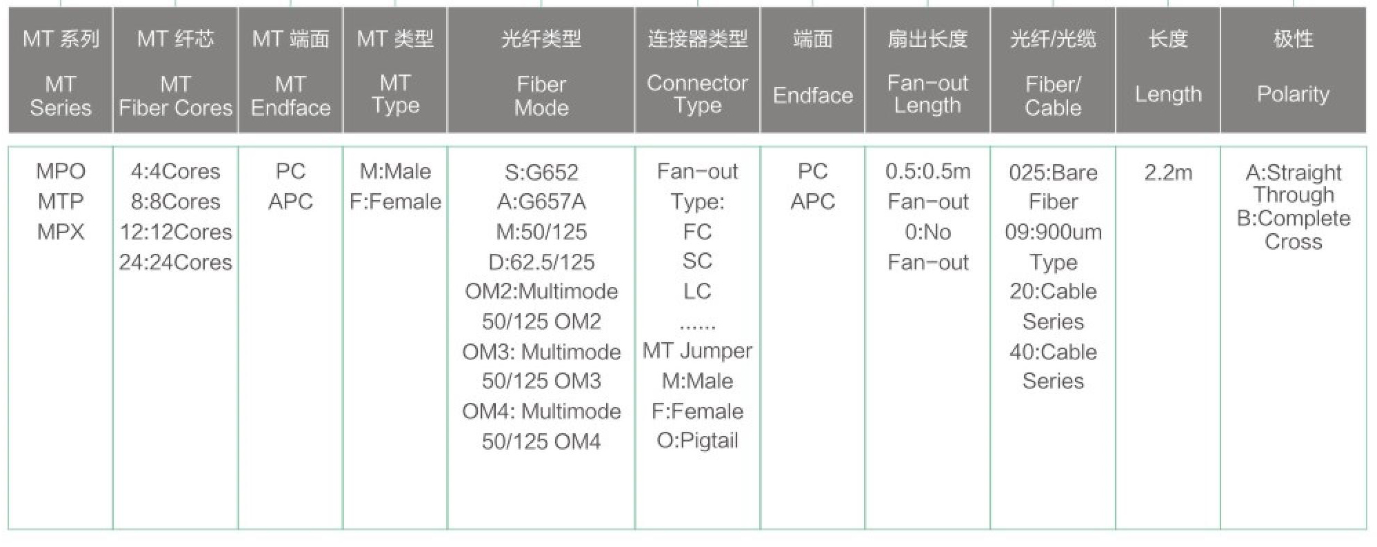 公司可提供各種類型和結構的MPO組件及跳線,產品所有MT插芯及散件全部采用進口元件